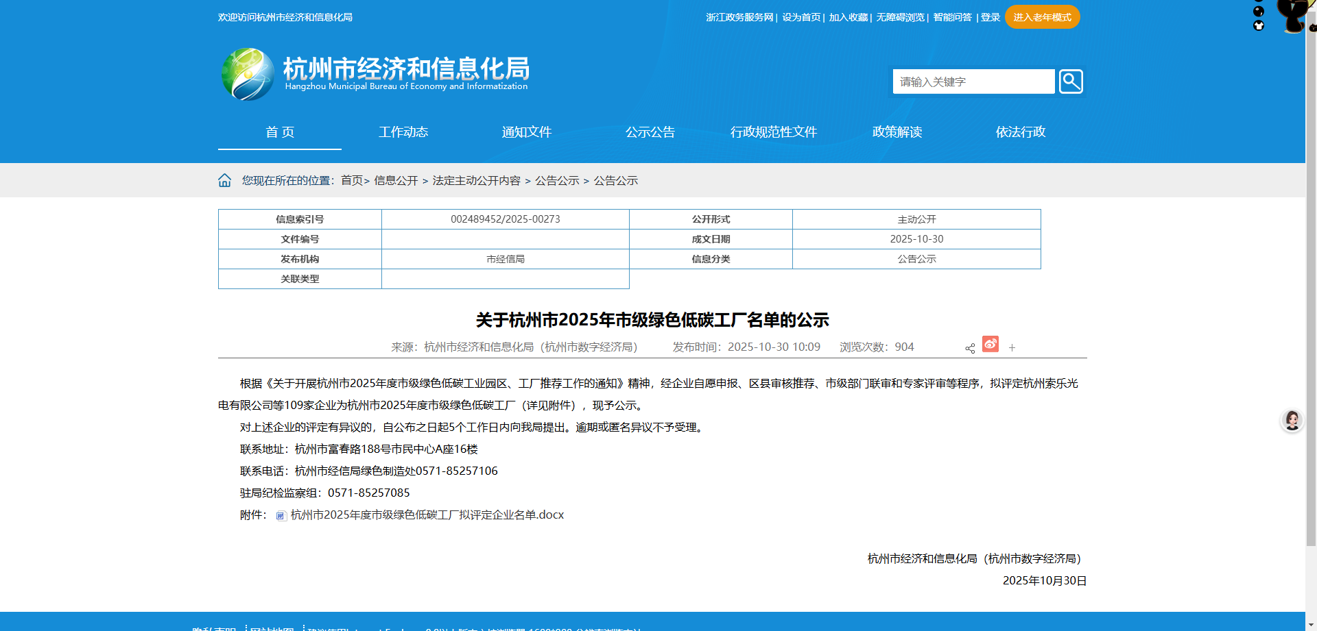 喜報(bào)!樂思達(dá)榮獲2025年杭州市級(jí)綠色低碳工廠